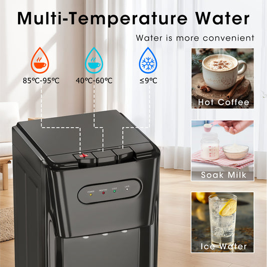 Bottom Loading Water Cooler Dispenser for 3 or 5 Gallon Bottles - Water Dispenser with Hot, Room & Cold Spouts, Child Safety Lock, LED Display with Empty Bottle Alert, Black