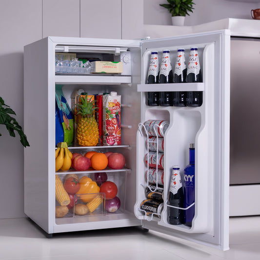 3.2 Cu.Ft Mini Fridge for Bedroom Office Dorm, Small Refrigerator with Freezer, Compact Fridge with Adjustable Thermostat, Low Noise, Energy Saving, White