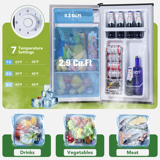 3.2 Cu.Ft Mini Fridge for Bedroom Office Dorm, Small Refrigerator Freezer, Mini Compact Fridge with Adjustable Thermostat, Low Noise, Energy Saving, Silver