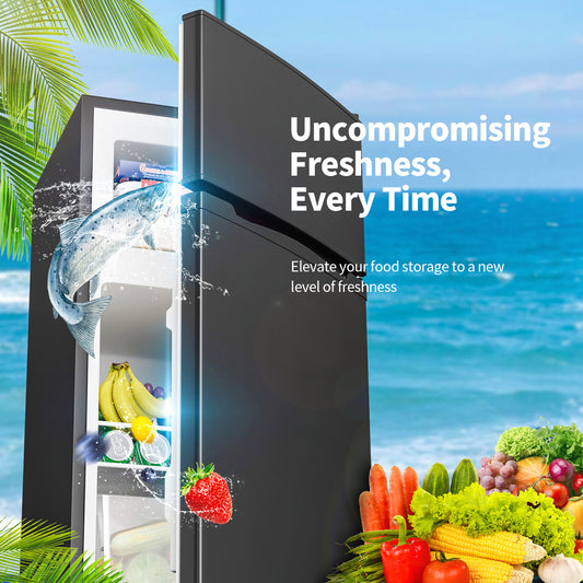 4.4 Cu.Ft Double Door Refrigerator with Freezer, Mini Fridge for Bedroom Office Dorm and Apartment, Small Compact Refrigerators with Wheels, Low Noise, Energy Saving, (Black)