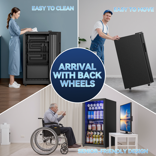 Beverage Refrigerator Cooler - 128 Can Drink Beer Fridge, Wine Soda Cooler, Mini Fridge Glass Door Front for/Home/Office/Bar, Small Refrigerator with Shelves/Light/Wheels