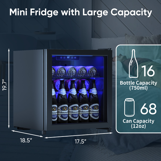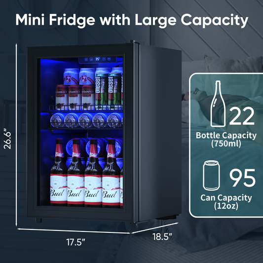 2.5 Cu.Ft Beverage Fridge, Mini Fridge With Glass Door, Beverage Cooler Refrigerator, Wine Drink Beer Fridge, Adjustable Shelves & Digital Temperature Display, 22 Bottle 95 Can