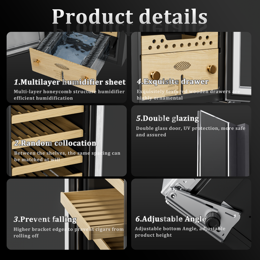 40L Electric Humidor Cabinet with Advanced Compressor Temperature & Humidity Control, Luxurious Alloy Door, LED Lighting, 4-Layer Desktop Design, Holds Up to 300 Cigars