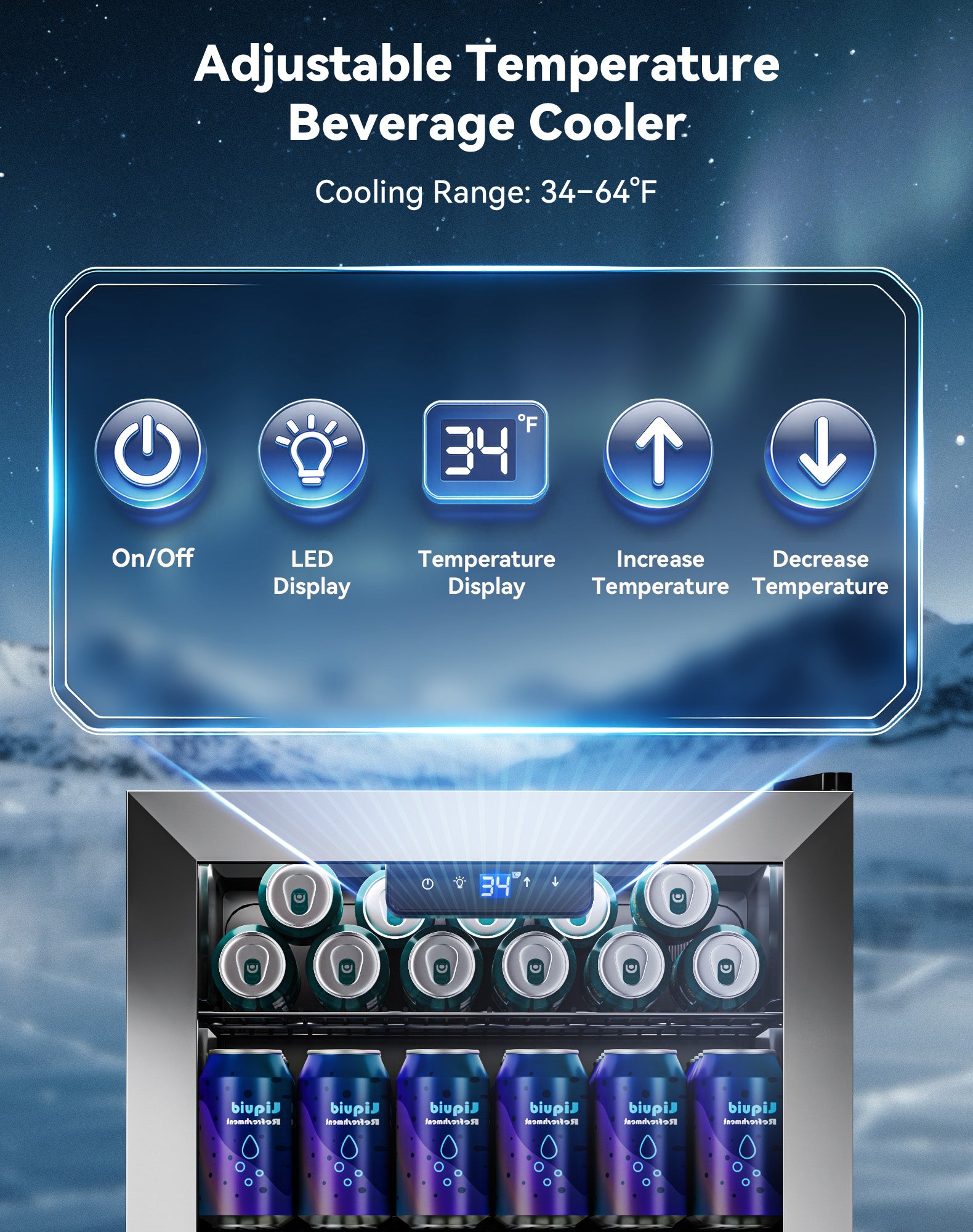 - ๐๐๐๐๐ผ๐บ ๐ง๐ฒ๐บ๐ฝ๐ฒ๐ฟ๐ฎ๐๐๐ฟ๐ฒ ๐๐ผ๐ป๐๐ฟ๐ผ๐น๏ผWith an adjustable thermostat, this single-zone drink cooler offers a 34ยฐFโ64ยฐF cooling range, ideal for keeping different beverages at their optimal temperature.