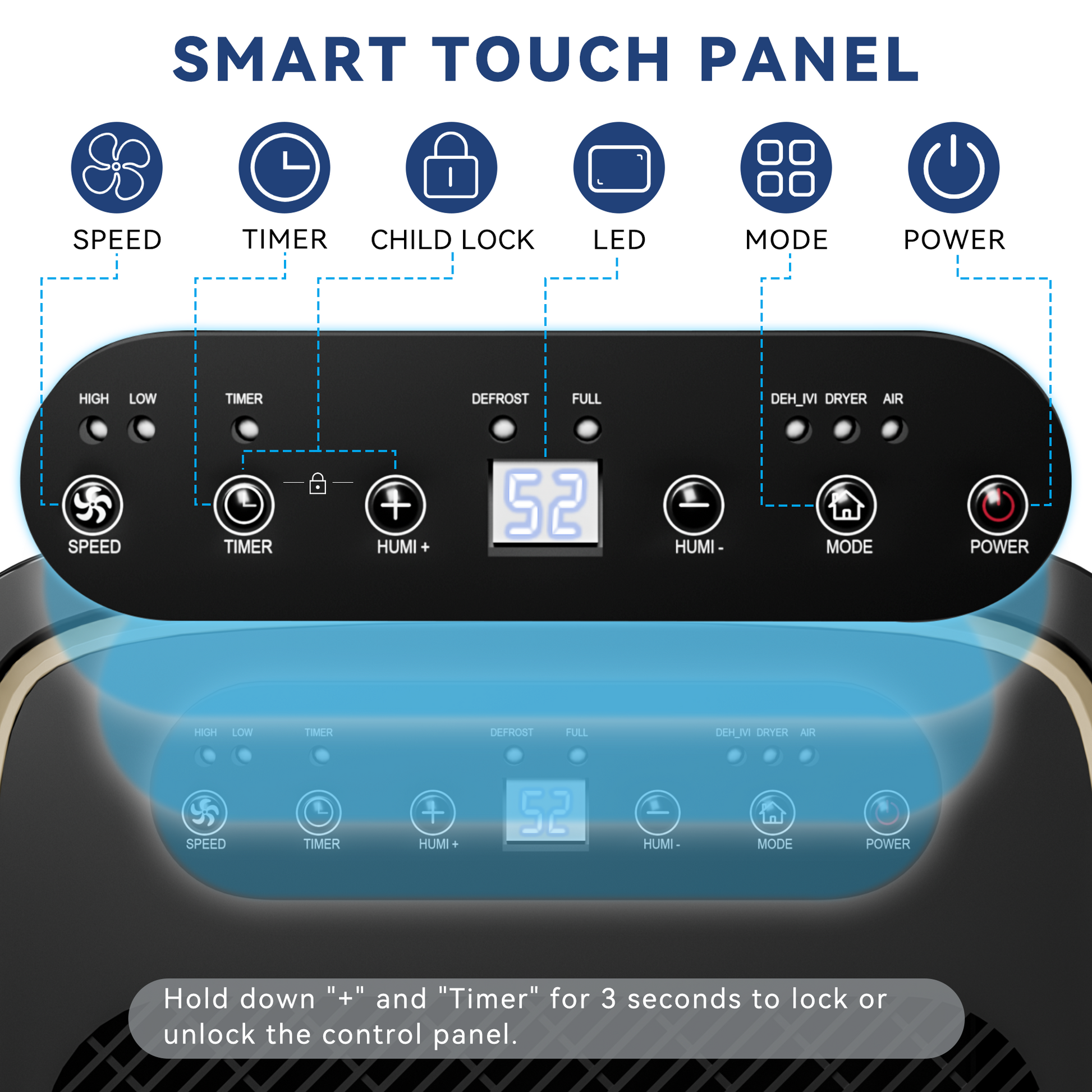 - 【Smart Safeguards, Simple Solutions】 Advanced electronic sensors auto-detect humidity and water levels, pausing operation when the tank is full. Clear error codes (E1/CL/CH/LO/HI) quickly identify issues, while multiple safety protections ensure worry-free drying. For details, just check the manual!